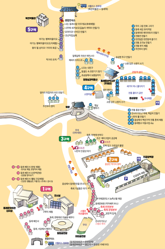 물밀 듯이 밀려오는 왜군에 맞서 나라를 위해 초개같이 목숨을 던진 동래부사 송상현과 동래 읍성민의 치열한 전추를 그린 동래성전투 실경 뮤지컬, 전국 유일의 동래세가달줄다리기 재현, 전통 한복을 입고, 짤랑짤랑 엽전을 가지고 동래 읍성민이 되어보는 동래장터 체험 등 다양한 볼거리, 먹거리, 즐길거리로 조선시대 읍성민으로의 하루를 경험해 보세요.